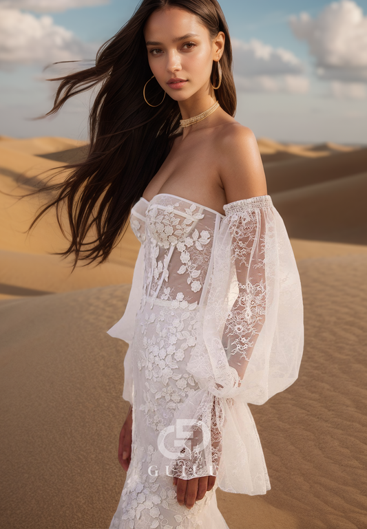Mermaid Long Sleeves Off-Shoulder Appliques Romantic Wedding Dress