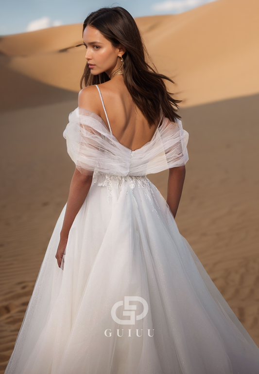 A-Line Spaghetti Straps Sweetheart Corset Tulle Appliques Lace Wedding Dress