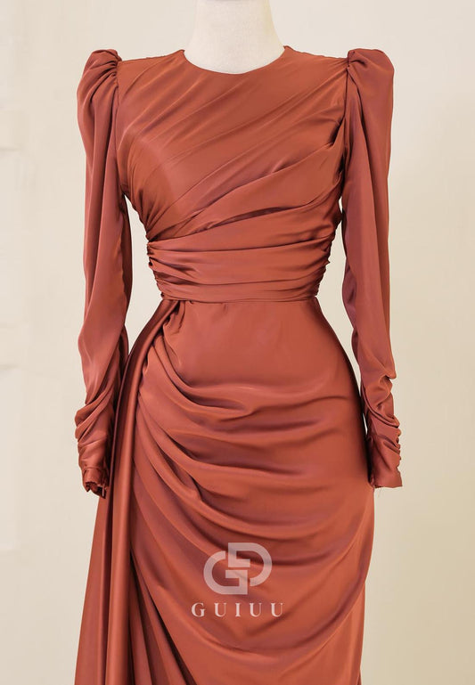 Mermaid Long Sleeves Scoop Satin Evening Dress