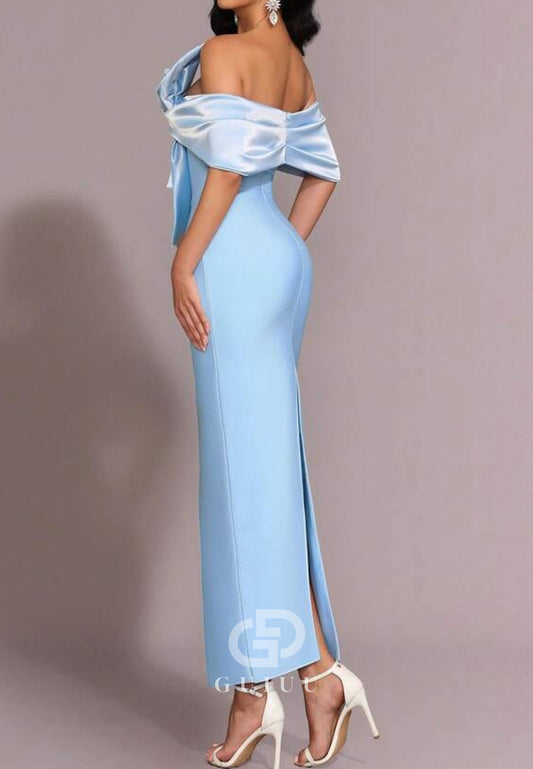 Sky Blue Off-Shoulder Bowknot Evening Dress