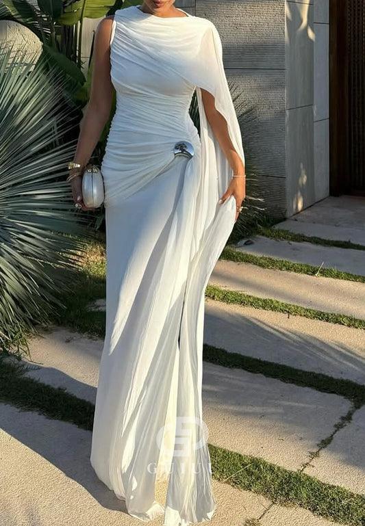 White One Shoulder Scoop Ruched A-Line Prom Dress