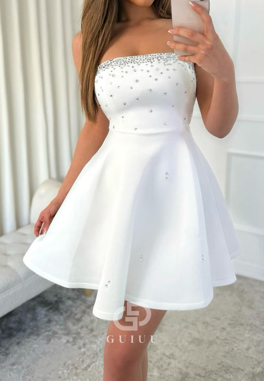 A-Line Strapless Sleeveless Sequins Mini Party Dress