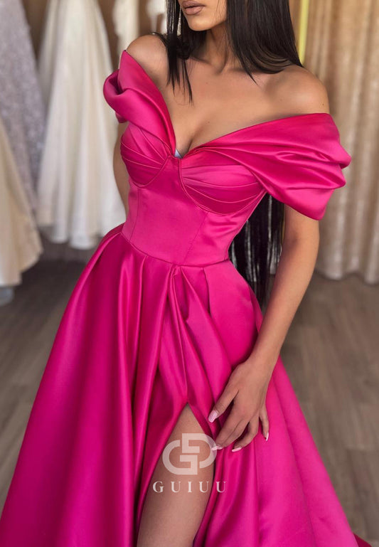G2550 - Chic & Modern Off-Shoulder Satin Long Prom Evening Dresses With Slit