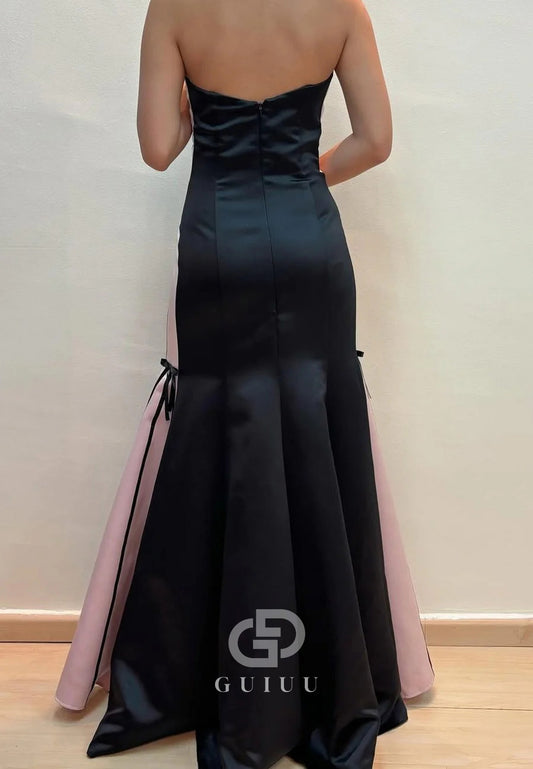 Black Strapless Sleeveless A-Line Scoop Satin Long Prom Formal Dress