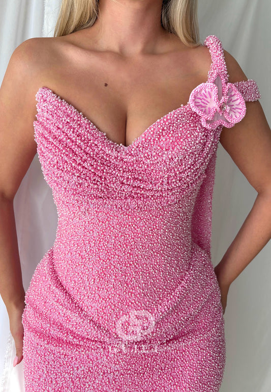 Blushing Pink One Shoulder Sequins A-Line Prom Dress