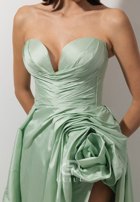 Mint Green Sleeveless Strapless Slit Ruched Prom Dress