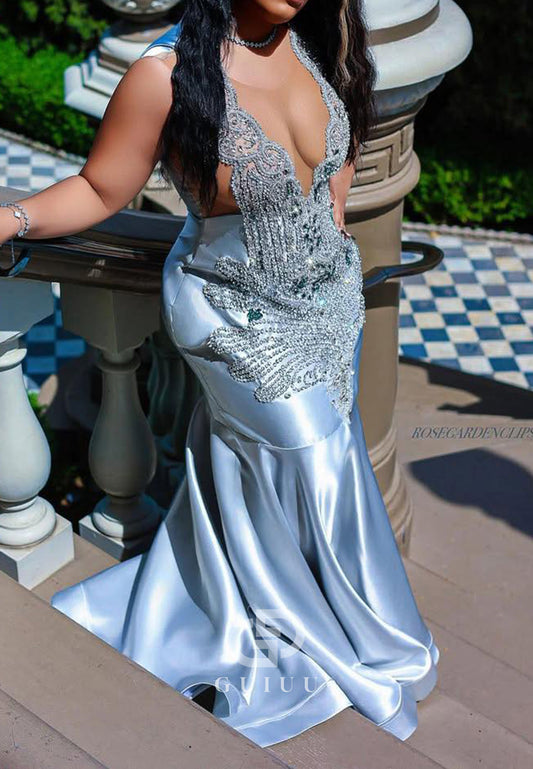 Sweetheart Beaded Sequins Sleeveless Mermaid Prom Dress