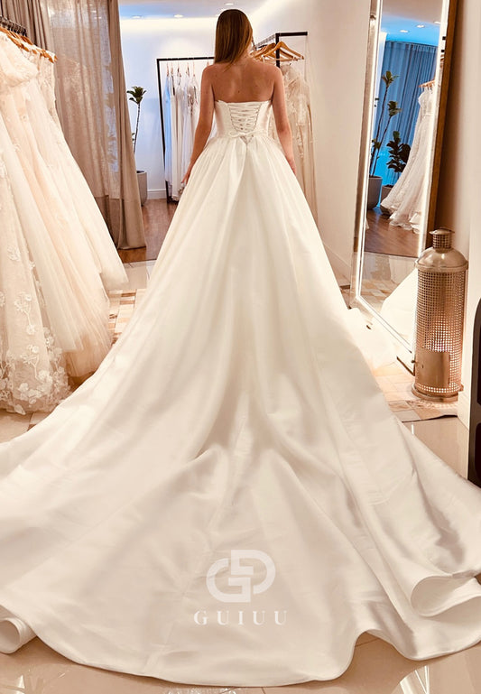 Elegant A-Line Strapless Sleeveless Corset Wedding Dress