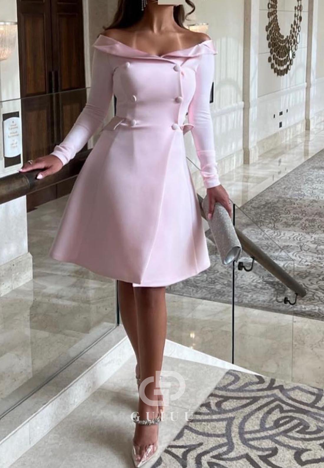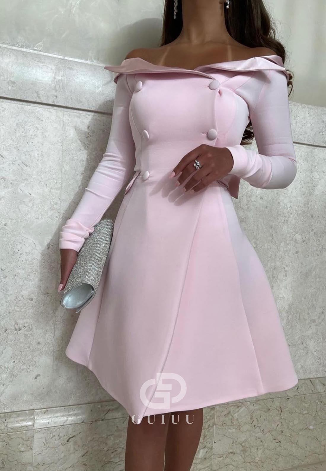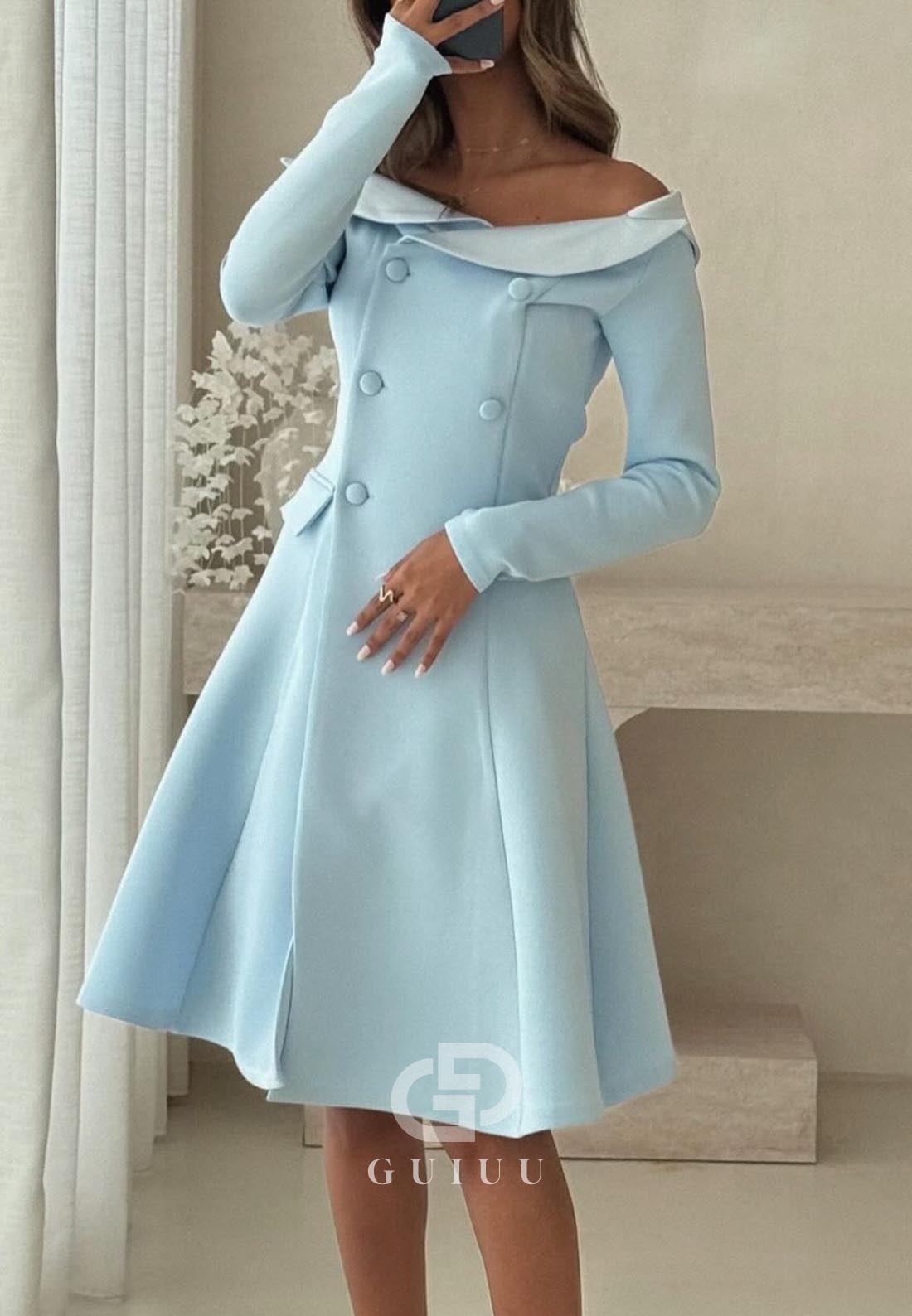 A-Line V-Neck Long Sleeves Knee-Length Work Dress