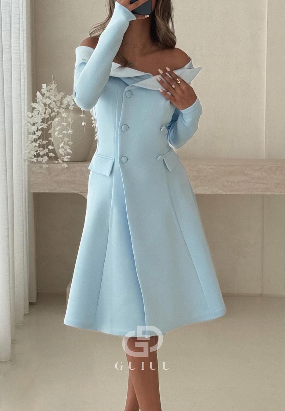 A-Line V-Neck Long Sleeves Knee-Length Work Dress x 1;