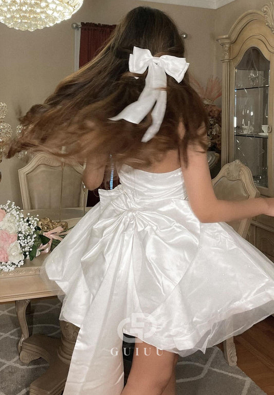 GH956 - Sheath Strapless Sleeveless Satin Short Homecoming Dress with Bow Knot