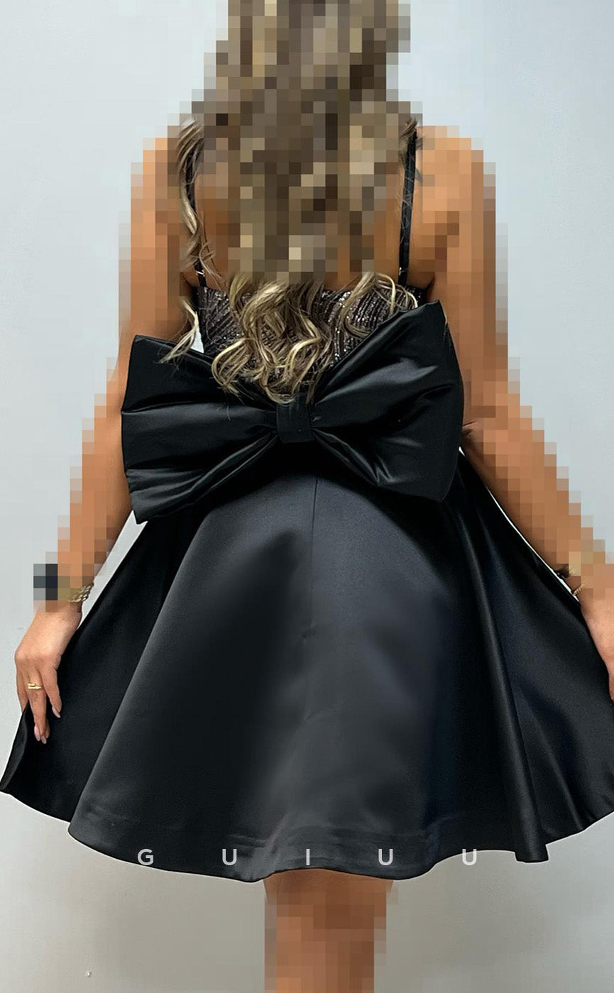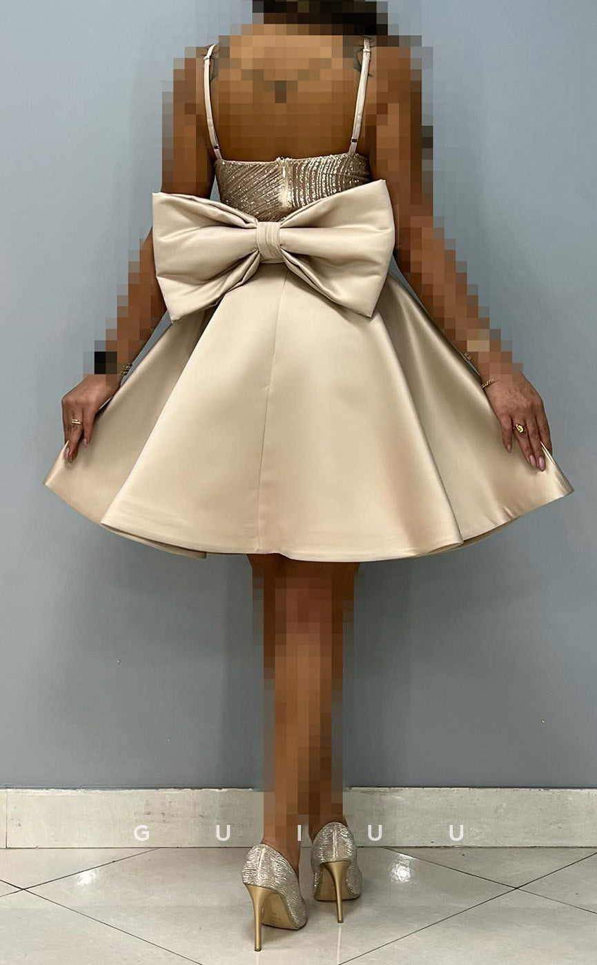Elevate your evening with the GH944 - A-Line V Neck Straps Sleeveles Lace Homecoming Dress. Crafted with delicate lace and adorned with a charming bow, this dress exudes sophistication. The flattering A-line silhouette and V-neckline add an alluring touch. Perfect for a special occasion or a night out, this dress will make you feel elegant and exclusive.