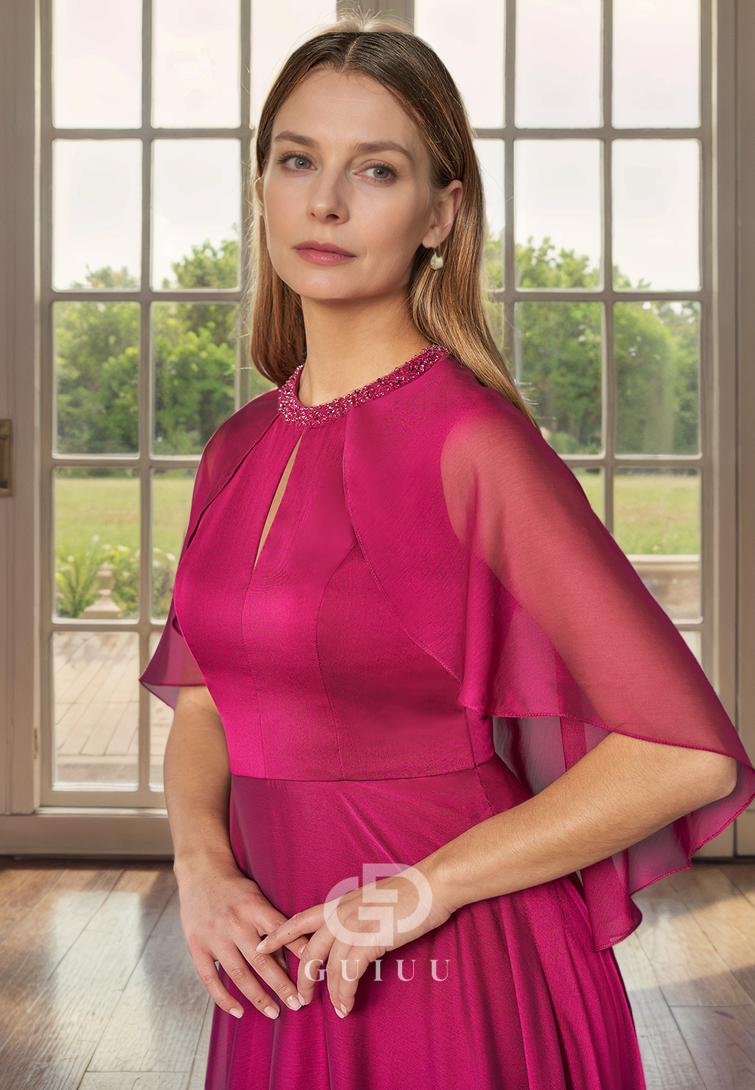 A-Line High Neck Sleeveless Beaded Back Zipper Mother of Bride Dress