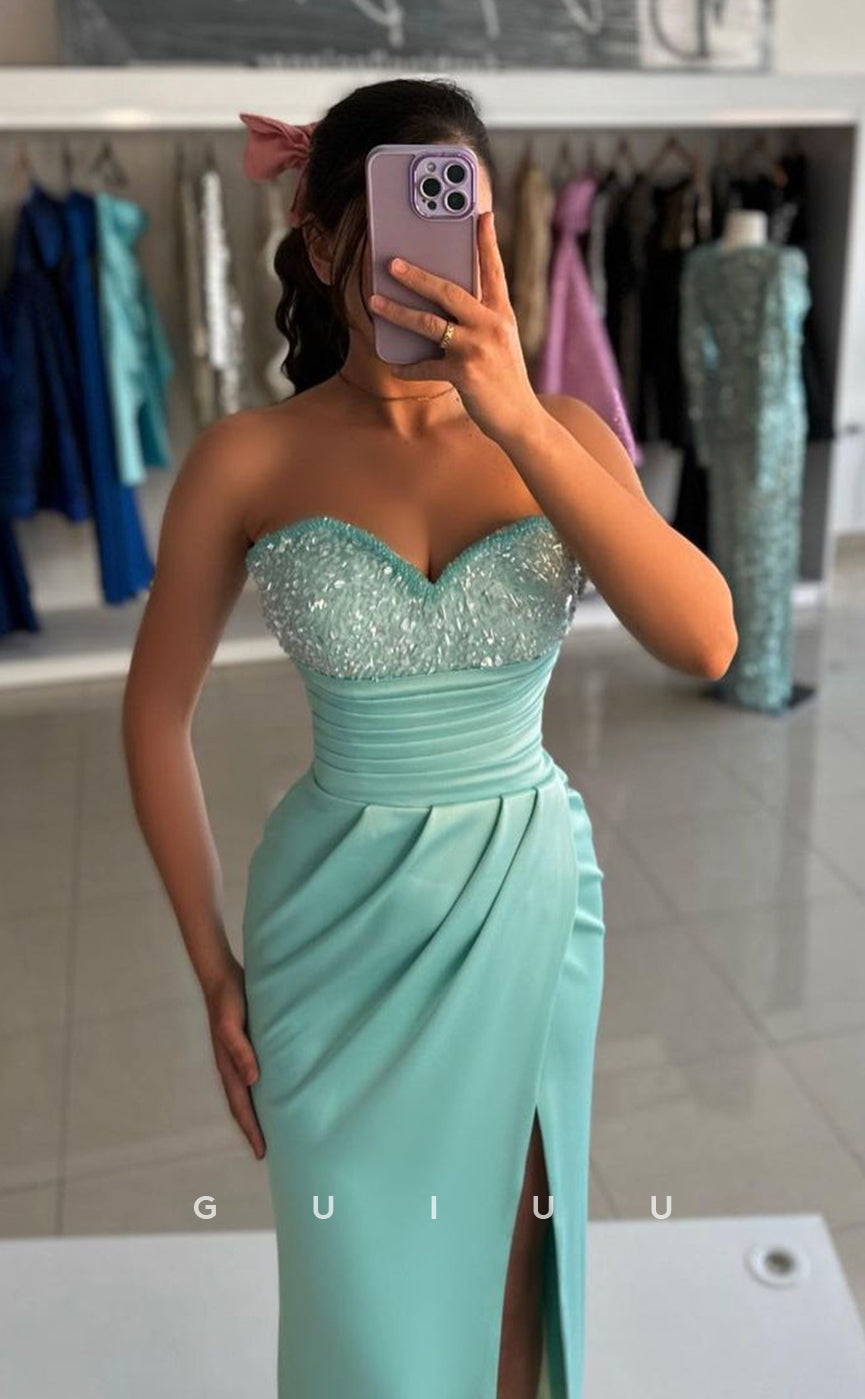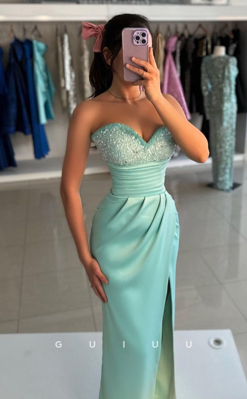 G4236 - Sheath Strapless Sleeveless Beaded Sequined Long Prom Party Dress