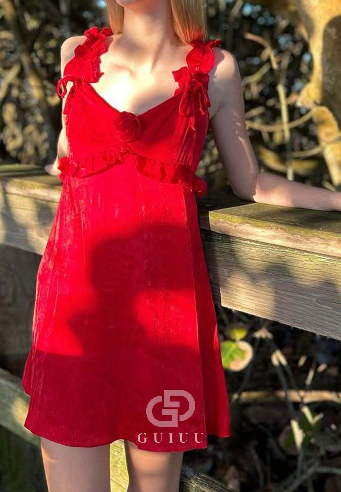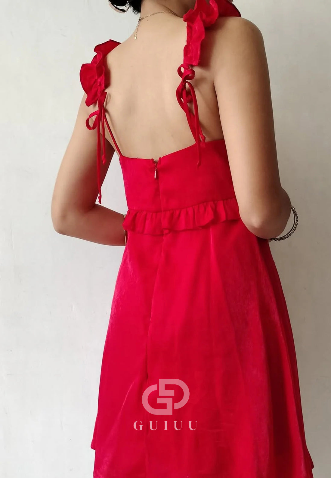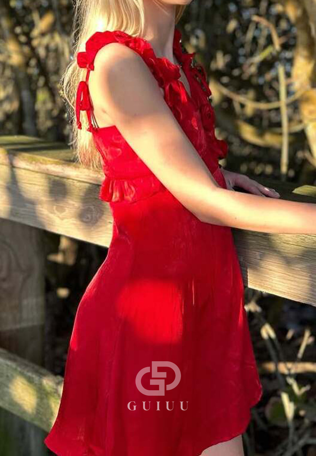 Satin Homecoming Dress Short Cocktail Dress with Rufffles