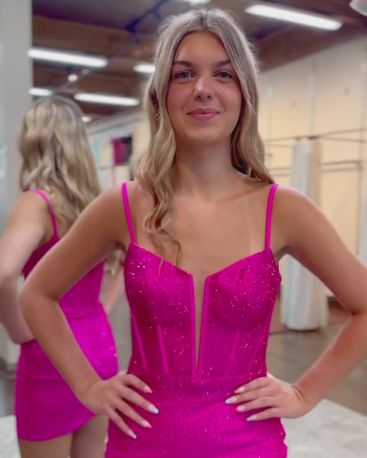 Sexy/Hot Deep V-Neck Spaghetti Straps Open-Back Gown Rhinestone Homecoming Dress