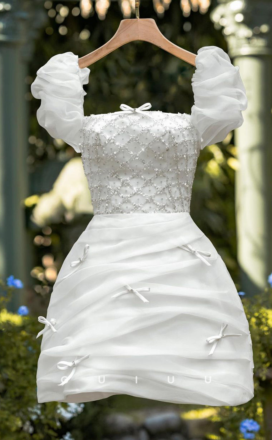 GH707 - Chic & Modern Square Beaded Sequins Short Homecoming Dress With Bow
