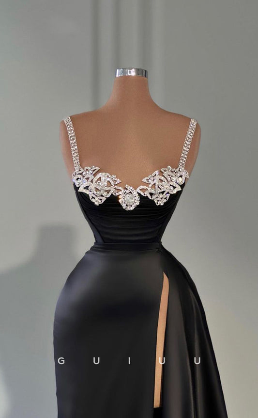 G4232 - Chic & Modern Sheath Scoop Beaded and Ruched Evening Gown Prom Dress with High Side Slit