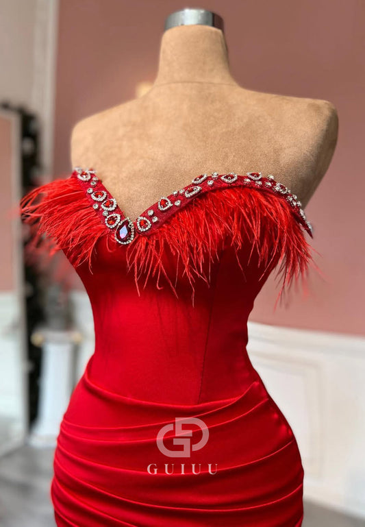 Red Sleeveless Strapless Prom Dress With Pleats Ruched Evening Party Dress